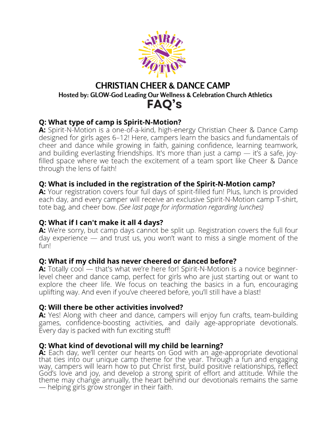 A Christian Cheer & Dance Camp For Young Girls Ages 6-12